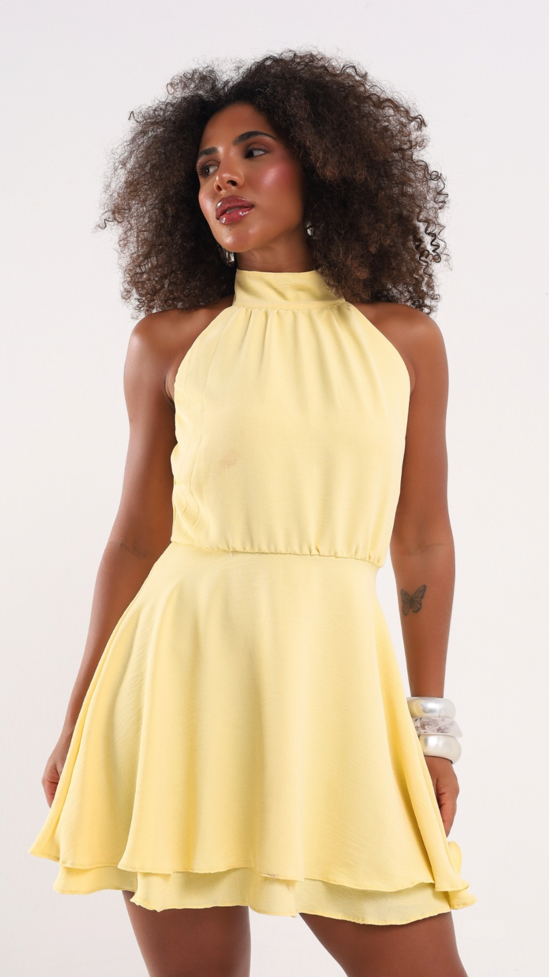 Vestido Luna possui fechamento em zíper e botões no pescoç. É todo fabricado no Crepe Inivictus ( Duna ), entregando caimento leve e confortável.